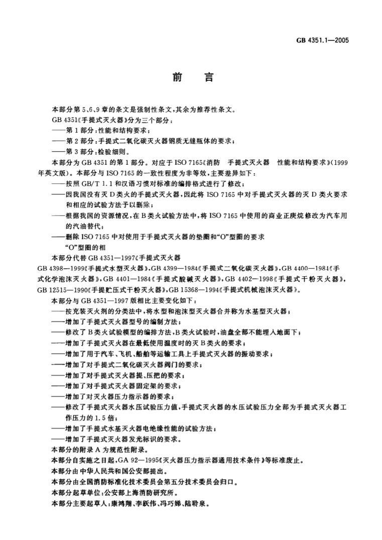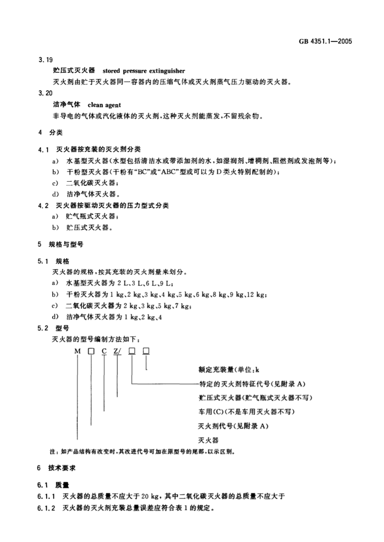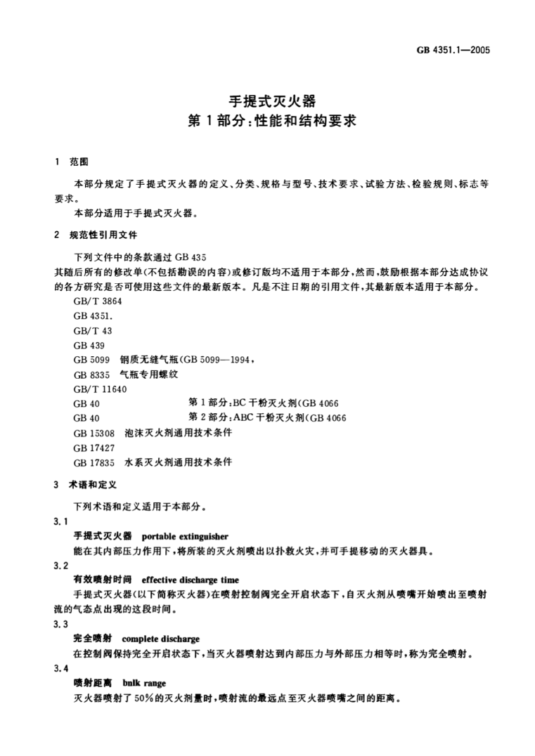 GB 4351.1-2005手提式滅火器第1部分性能和結(jié)構(gòu)要求
