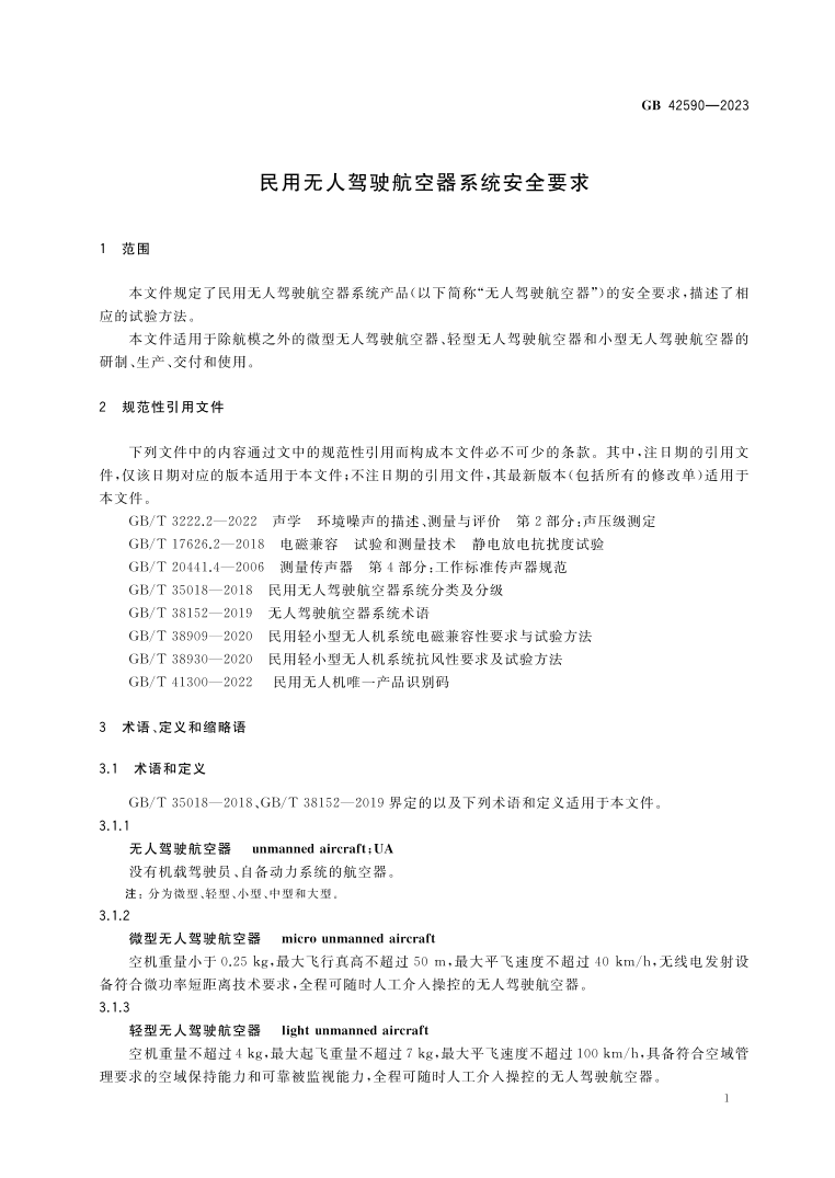 GB42590-2023《民用無人駕駛航空器系統(tǒng)安全要求》
